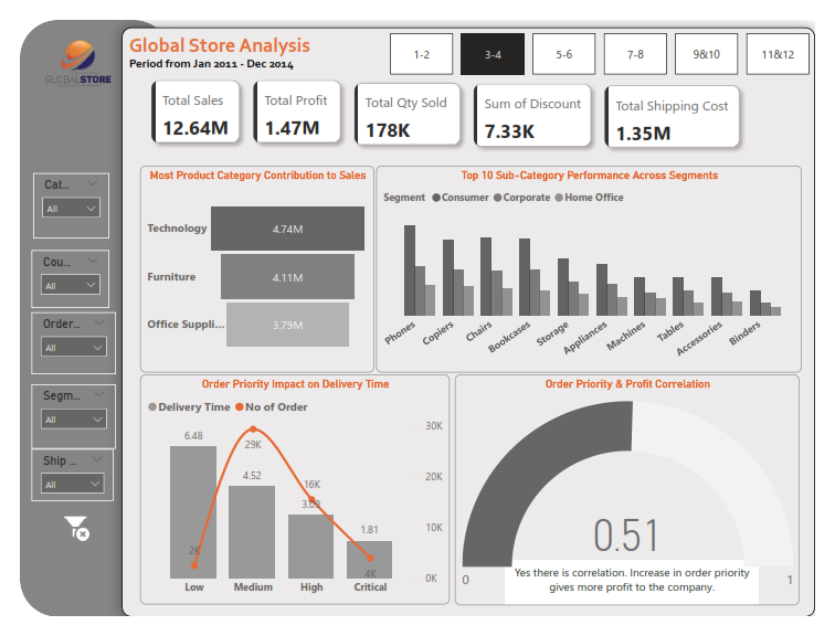I’m excited to share one of my recently completed projects, a comprehensive Sales Performance Analysis built using Power BI. This Power BI dashboard was designed to help businesses make data-driven decisions by visualizing key metrics related to sales, profit, customer segments, and shipping performance. The analysis covers revenue distribution across regions, order priorities, product profitability, and the impact of discounts and shipping costs on overall performance.